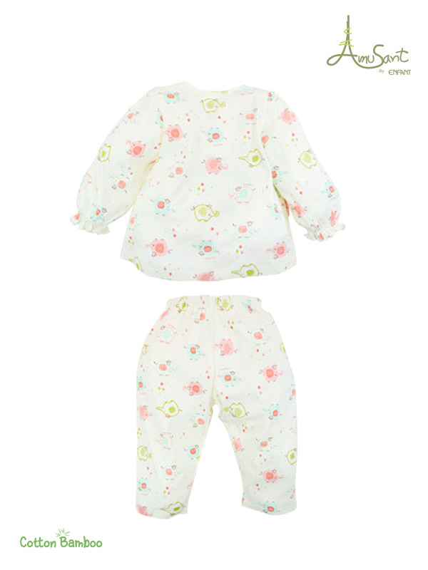 | Description | Amusant Girls Pajamas Cotton Bamboo Printed Cute Elephant It is cotton blended with bamboo fiber. Soft fabric, very comfortable to wear. The shirt is a pullover, has 2 buttons on the front, ribbed sleeves, and has a real pocket on the front. All-around elastic waist pants Very comfortable to wear. |