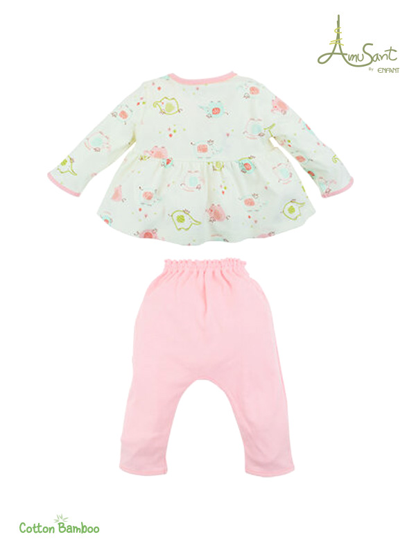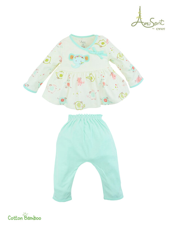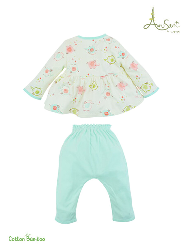 | Description | Amusant Girls' T-shirt and Pants Set Cotton Bamboo with cute elephant print. ( 40% bamboo 60% cotton fabric) very soft and comfortable to wear. The shirt is printed with baby Elephant print fabric. Decorated with a cute collar and cuffs. Open the shoulder with 1 snap.The chest is decorated with a badge and a ribbon |