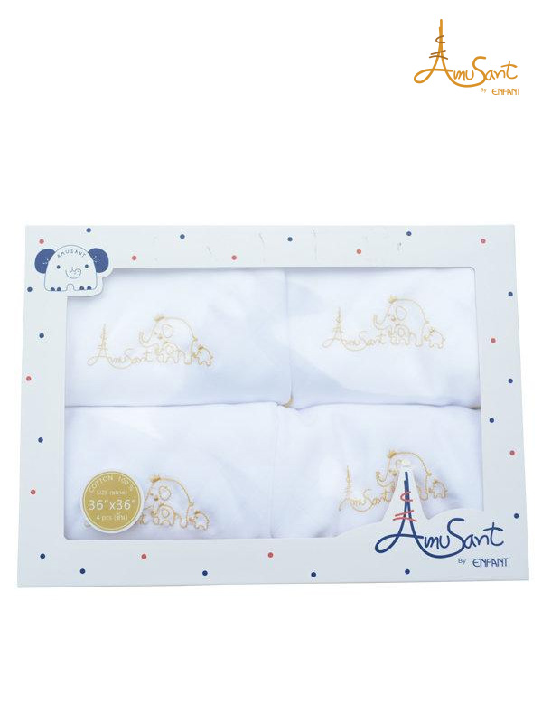 AMUSANT Baby Muslin Diaper (Gift Set) Fabric : 100% Cotton Woven Fabric The fabric structure is tight with special woven yarn The Muslin Diaper are sewn with a gold edge. The gift box set have 4 pcs inside. Caution : Wash with normal temperature water (Do not wash with warm or hot water and do not dry) Because it will cause the fabric hard cloth. |