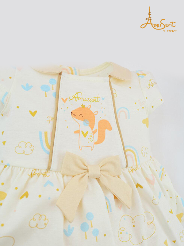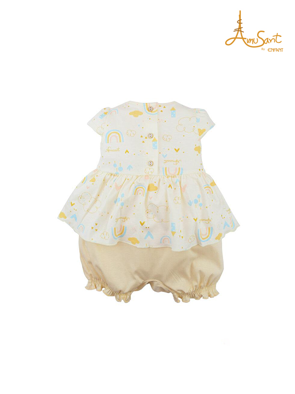 Amusant Brand baby Girl Body Suit, 100% Cotton (Woven Fabric) Super Soft Fabric. Body Suit, Baby Girl Style, Short pants and Sleeve, cut hem and decorate a cute big bow, Design for easy wearing with 3 buttons on the back with opening crotch snap. |
