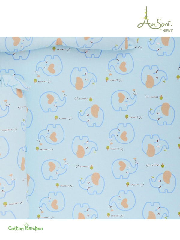 AMUSANT BRAND Baby Mattress set (Green Collection) Wth Woven Cotton Bamboo Fabric printed lovely little elephant